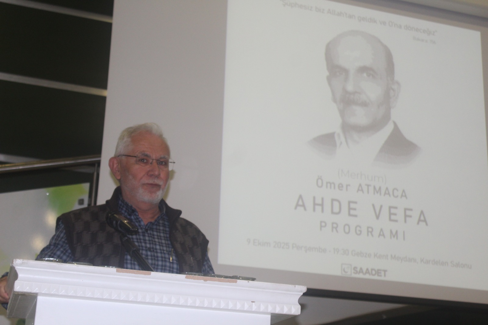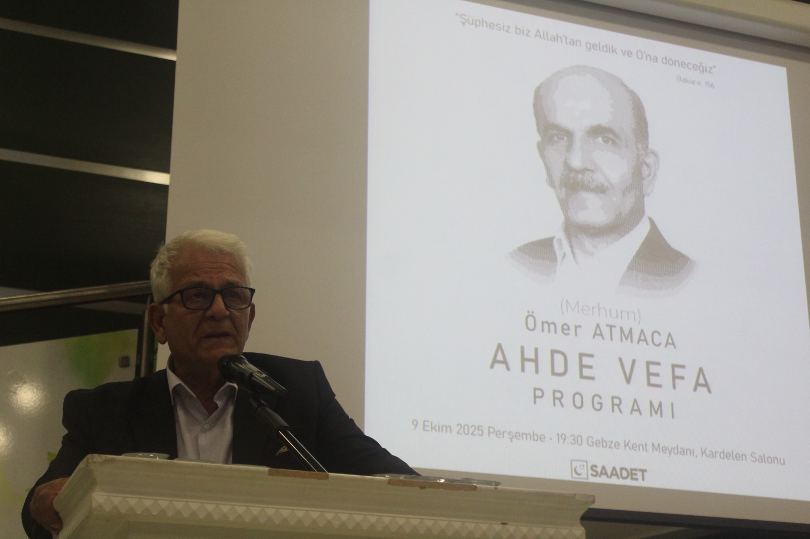 Milli Görüş davasının Gebze ilçesi ve bölgesindeki “eski tüfek” siyasetçilerinden; 1984-1989 yılları arasında Milli Görüş’ün o yıllardaki partisi –kapatılan- Refah Partisi Gebze İlçe Teşkilatı’nda iki dönem başkanlık yapan Ömer Atmaca, vefatının 40’ncı gününde Saadet Partisi Gebze İlçe Teşkilatı’nca düzenlenen “Ahde Vefa” programında anıldı. Gebze Belediyesi Nikâh Salonları, Salon Kardelen’deki program Çoban Mustafapaşa Camii imamı Adem Aktaş’ın Kuranı Kerim tilaveti ve Saadet Partisi Gebze İlçe Başkanı Erkan Vural’ın açılış konuşması ile başladı.