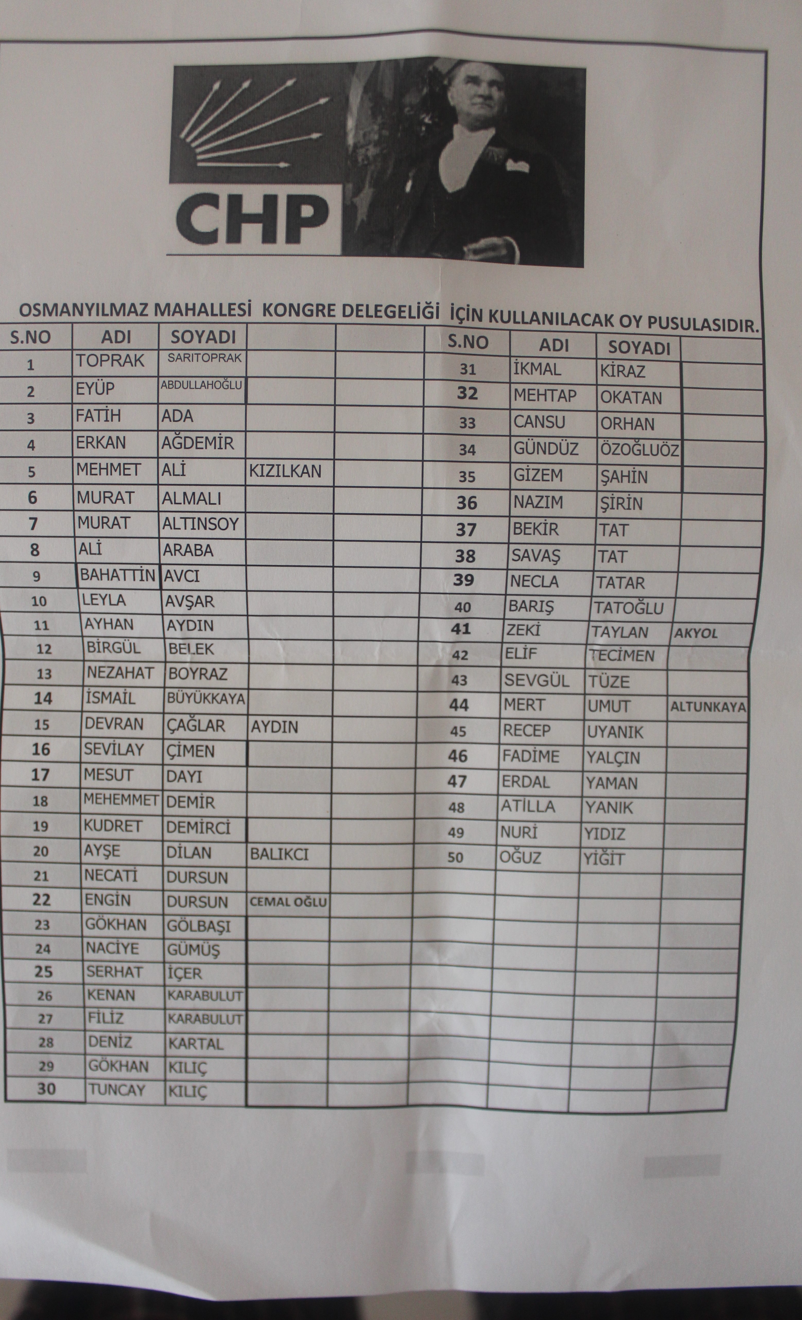 Fotolar bölümünde yer alan delege liste fotoları; Köşklüçeşme’de Cüneyt Akın’ın Osman Yılmaz’da Gökhan Orhan’ın seçimi kaybeden listelerinin fotoğrafıdır.