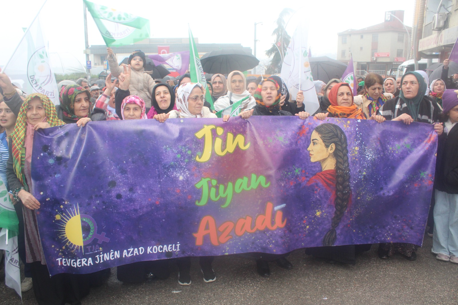 “Kürdistan faşizme mezar olacak”, “Jin jiyan azadi” gibi Kürtçe ve Türkçe sloganların atıldığı Dilovası meydanında gerçekleşen, CHP Dilovası İlçe Başkanı Semiha Meral Pırtı ile çeşitli STK’lardan başkanların da katıldığı eylem DEM Parti Dilovası İlçe Eşbaşkanı Sabri Uçar’ın kısa bir selamlama konuşması ile başladı. Kocaeli Demokratik Kurumlar Platformu eşsözcüsü Mehmet Alçınkaya’nın konuşması ile sürdü.