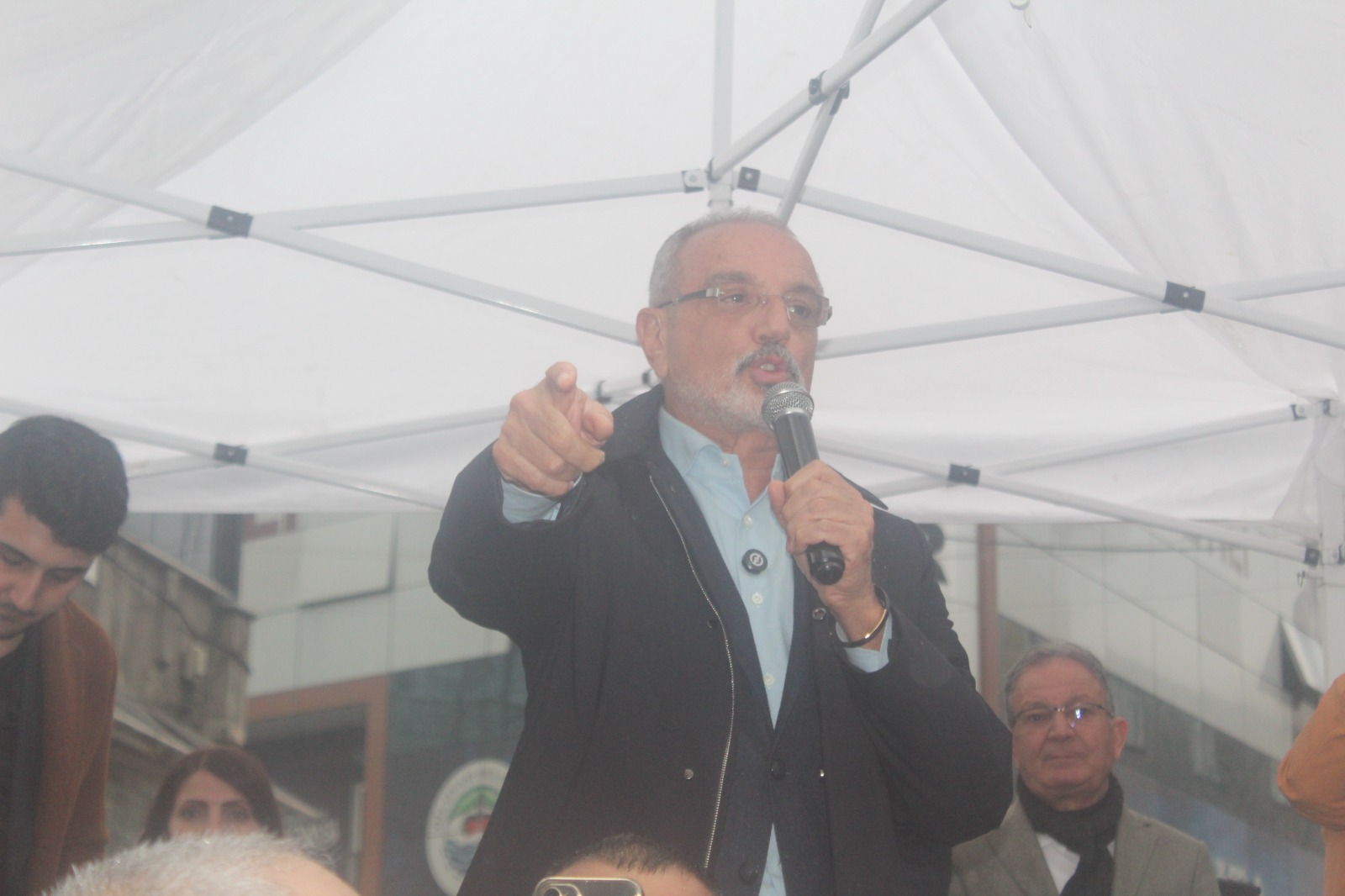 Hayatın her alanında kim zulüm görüyorsa zalimlerin karşısında biz olacağız. Buradaki Valiye çağrımdır. Sizde hiç ar, edep, utanma duygusu yok mu? O kızın işine nasıl son verdiniz? Hakkında soruşturma nasıl yaptınız? Ey savcı, ey ilin emniyet müdürü, siz de utanma yok mu? O kız kardeşimize ters kelepçe yaptığınızda hiç mi vicdanınız sızlamıyordu? Ne yapmıştı sadece saçını örmüştü?”