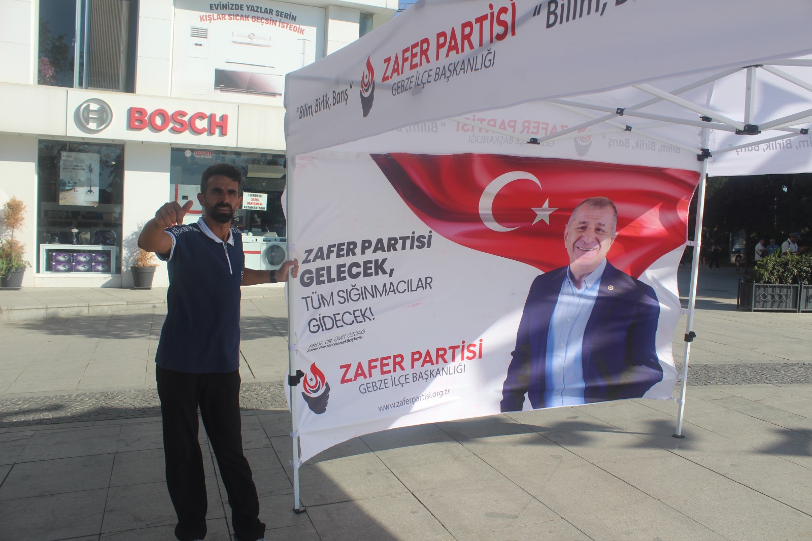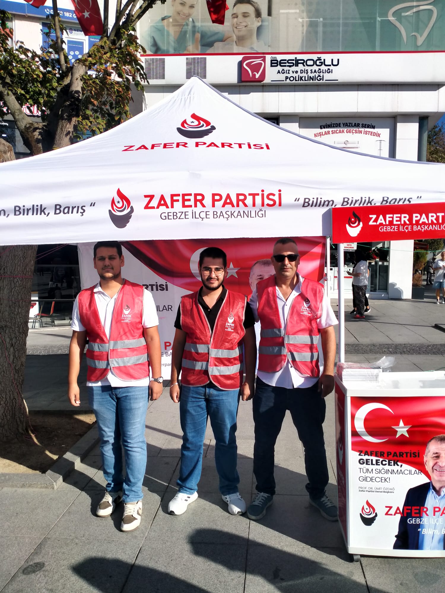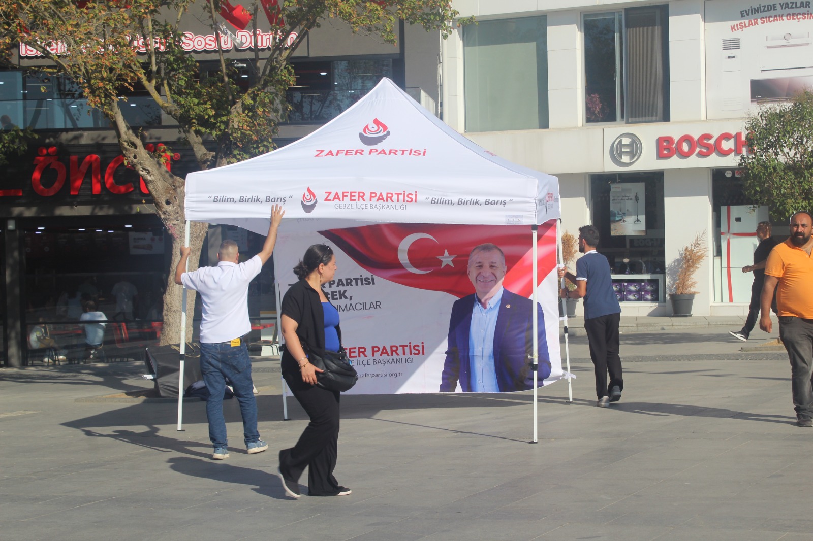 Zafer Partisi Gebze İlçe Teşkilatı’nda yeniden yapılanma sonrası partililer kendilerini çok uzun bir aradan sonra 15 Temmuz Milli İrade Kent Meydanı’nda yeniden gösterdi. İlçe Sekreteri Tan Akdaş, STK’lardan sorumlu yönetim kurulu üyesi Arif Uçar, ilçe sözcüsü Yalçın Çirci ile üye Volkan Sevgi meydanda bir taraftan tanıtım için stant kurmaya çalışırken diğer taraftan şiddetli rüzgârla boğuştu. Ortaya ilginç görüntüler çıktı ancak Zafer Parti Gebze İlçe heyeti uzun uğraş sonrası korunaklı bir alanda çalışmalarını sürdürdü.