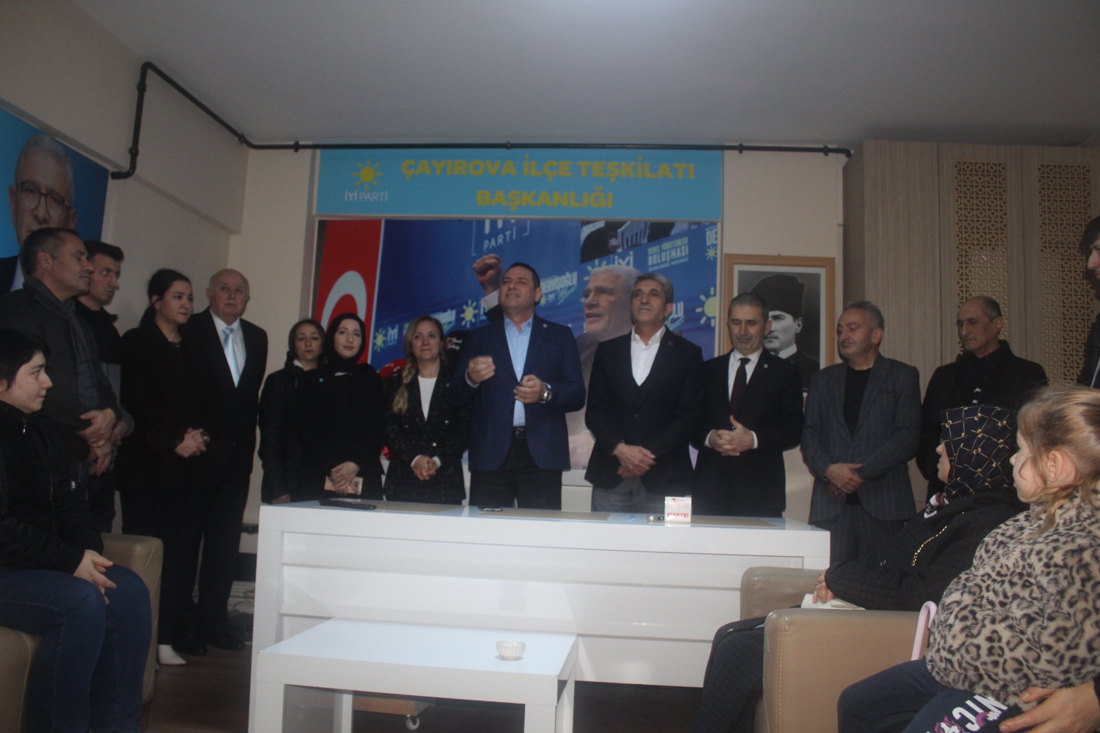 İYİ Parti Çayırova İlçe Başkanı İlhami Bayrak yeni üyelikleri, “Ülkemizin içinden geçtiği zorlu süreçte Türkiye Kuvayi Milliye ruhunu taşıyan ve önüne konulan Büyük Ortadoğu Projesi’nin karşısında direnen milletimizin ruh kökü İYİ Partimizin verdiği mücadeleye destek olmak için İYİ Parti saflarında olmak isteyenlerin katılımı” diye tanımladı. Bayrak, “Planlanmayan, sadece davete icabet olarak bugün buraya gelen ve buraya sığmayan, öyle tahmin ediyorum ki ileride inşallah büyüyeceğini bildiğim için mahşeri bir kalabalığı ağırlamanın hazzı ve onurunu yaşıyorum. Hepinizin ayağına sağlık. Hepinize ayrı ayrı teşekkür ediyorum. Hoş geldiniz. Şeref verdiniz” diye konuştu.