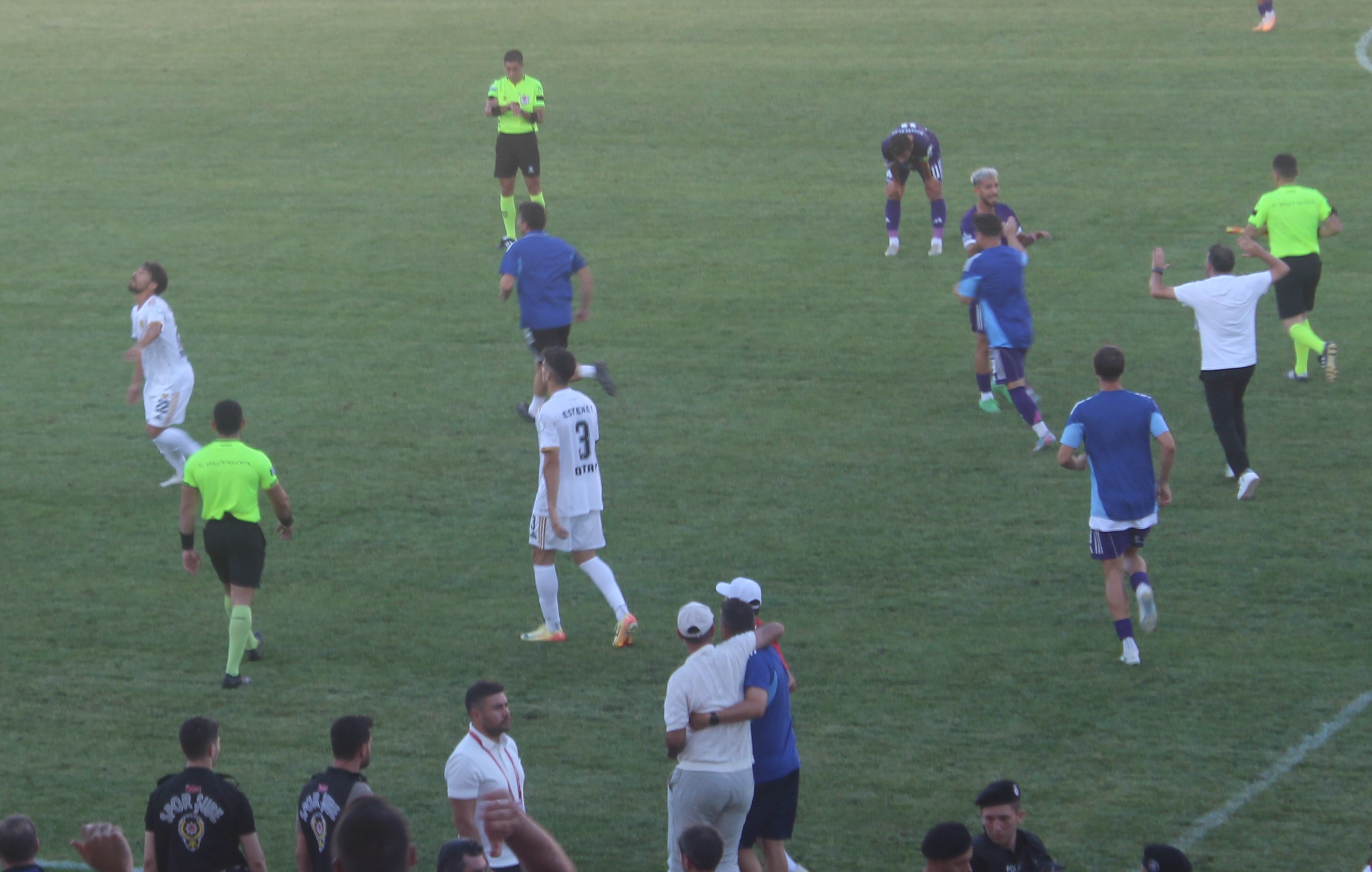 Müsabakanın sonuna 6 dakika eklendi. Konuk ekibin 90+2’deki atağında Furkan Taş’ı kalenin biraz önünde gören rakip forvet hattı, aşırtma bir kafa vuruşu çıkardı ancak yükselen top hızını kaybedince kalecimiz bu topu geri dönerek çıkardı. 90+4’de saha karıştı. Oyun iki dakika durdu. Hakem Mertcan Erölmez her iki yedek kulübesine de ikişer sarı kart gösterdi. Akan oyunda 90+6’da Aliağa’nın bir kafa şutunda daha gole izin vermedik.