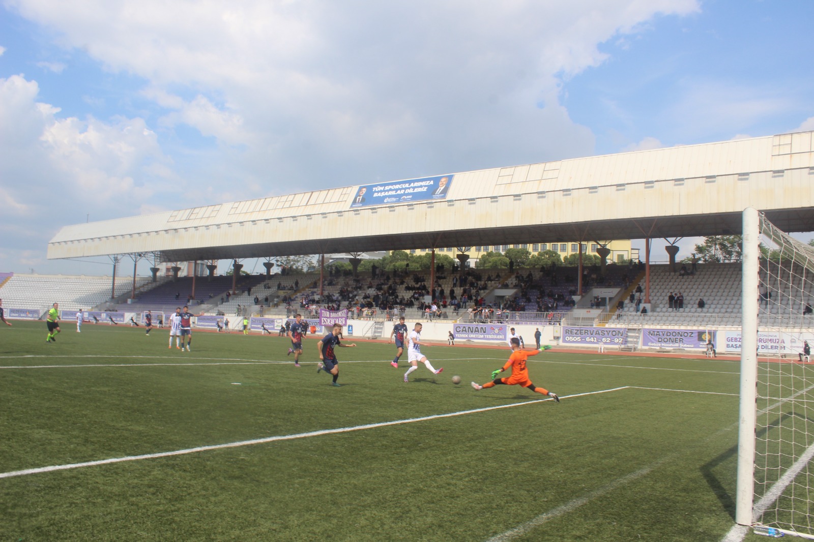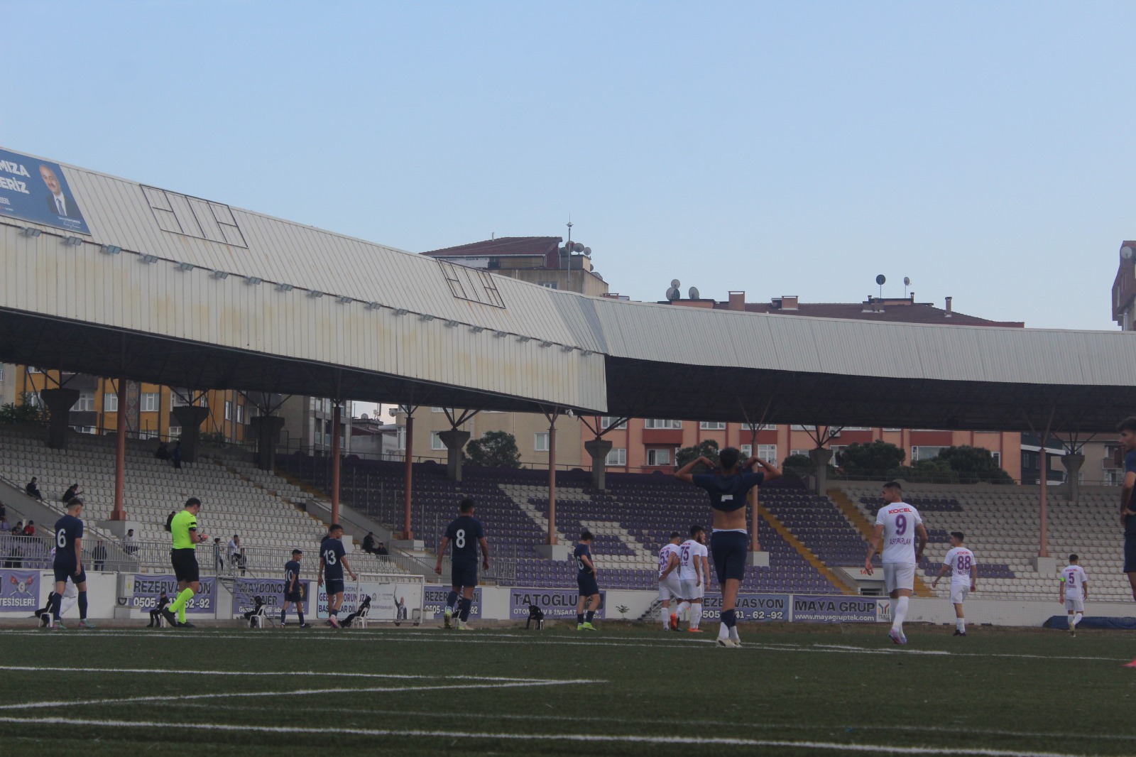 Gebzespor’un bu sezon da grup şampiyonu olamaması tribünlere de yansıdı. Menekşeleri ekseri çok genç yaşta bir grup taraftar, zaman zaman tepki göstererek desteklerken yönetimden de Nilgün Erol ve Şener Çelikkaleli ile kulübede Hüseyin Eren hariç yönetim kurulu üyesine rastlanılmadı. Maçı CHP Gebze İlçe Başkanı Gökhan Orhan’ın eşi Cansu Orhan, oğulları ile birlikte protokol koltukları ön sıradan izledi. Maça siyasetçi ve bürokrat ilgisi de hiç olmadı.