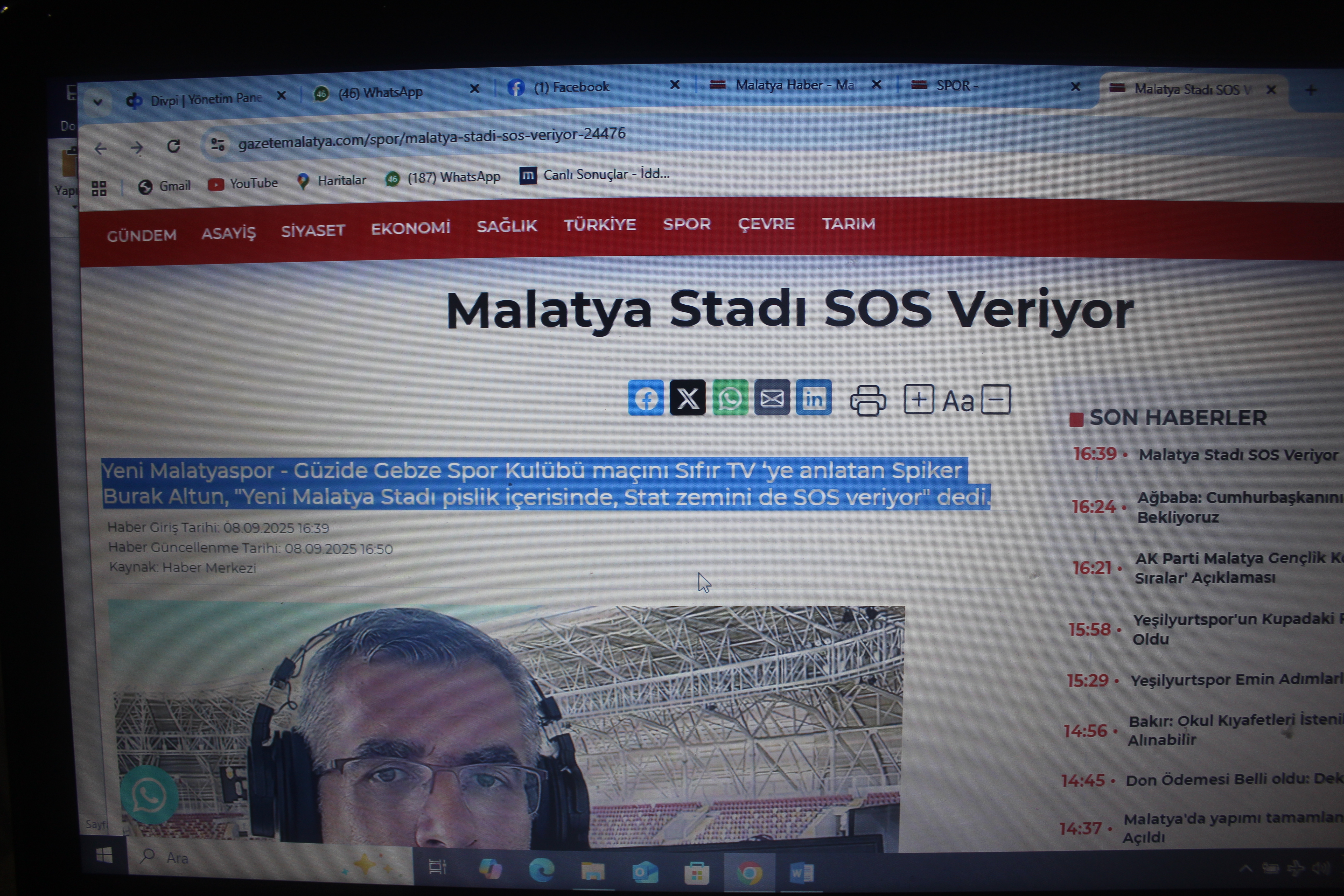 Üstelik Gazete Malatya’nın “Malatya Stadı SOS veriyor” başlıklı haberine göre dış görünüşü güzel ama kötü bir statta oynadık: Hafta sonunda oynanan Yeni Malatyaspor - Güzide Gebze Spor Kulübü maçını Sıfır TV ‘ye canlı olarak anlatan Gazeteci Burak Altun "Yeni Malatya Stadyumunun girişinden çıkışına kadar her taraf çöp, pislik içerisindeydi. Asansörler çalışmıyor, stad hoparlörleri kulak tırmalıyordu. Yaz ayı olmasına rağmen stad zemini SOS veriyordu. Gençlik ve Spor İl Müdürlüğü sanırım tam YATIŞ yeri olmuş. Devletimizin milyonluk yatırımına çok ciddi maaş almalarına rağmen Gençlik ve Spor İl Müdürlüğü tarafından bakılmıyor. Şunuda özellikle belirteyim. Malatya’da ki tüm spor tesislerinde bu durum geçerli" uyarısında bulundu.