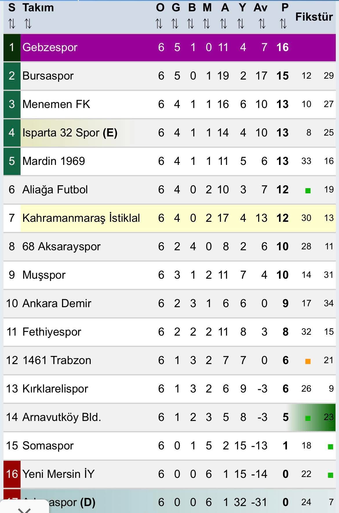 Menekşeler haftaya 13 puanla, ikinci sırada, lider Bursaspor’dan 2 puan az haliyle girdi. Yeşil beyazlılar dün akşam evinde şampiyonluk adaylarından Ispartaspor’a 1-0 kaybetti. İlk üç hafta eşit puanla zirve ortaklığı yapan temsilcimiz Bursaspor’un söz konusu kaybıyla zirveye ilk defa, puan farkıyla, 16 puanla kuruldu. Menekşeler önümüzdeki hafta Adana deplasmanında Adanaspor’a konuk olacak. Mutlak favori olduğu maçta hata yapmayacağı sanılan Güzide Gebzespor bir sonraki hafta ise evinde Ispartaspor’u ağırlayacak. Etkili ve vefakar bir taraftar grubuna sahip Ispartaspor ile oynayacağımız maç sadece sahayı değil karşılıklı tezahüratlar ile, tribünleri de seyre doyurmaya namzet.