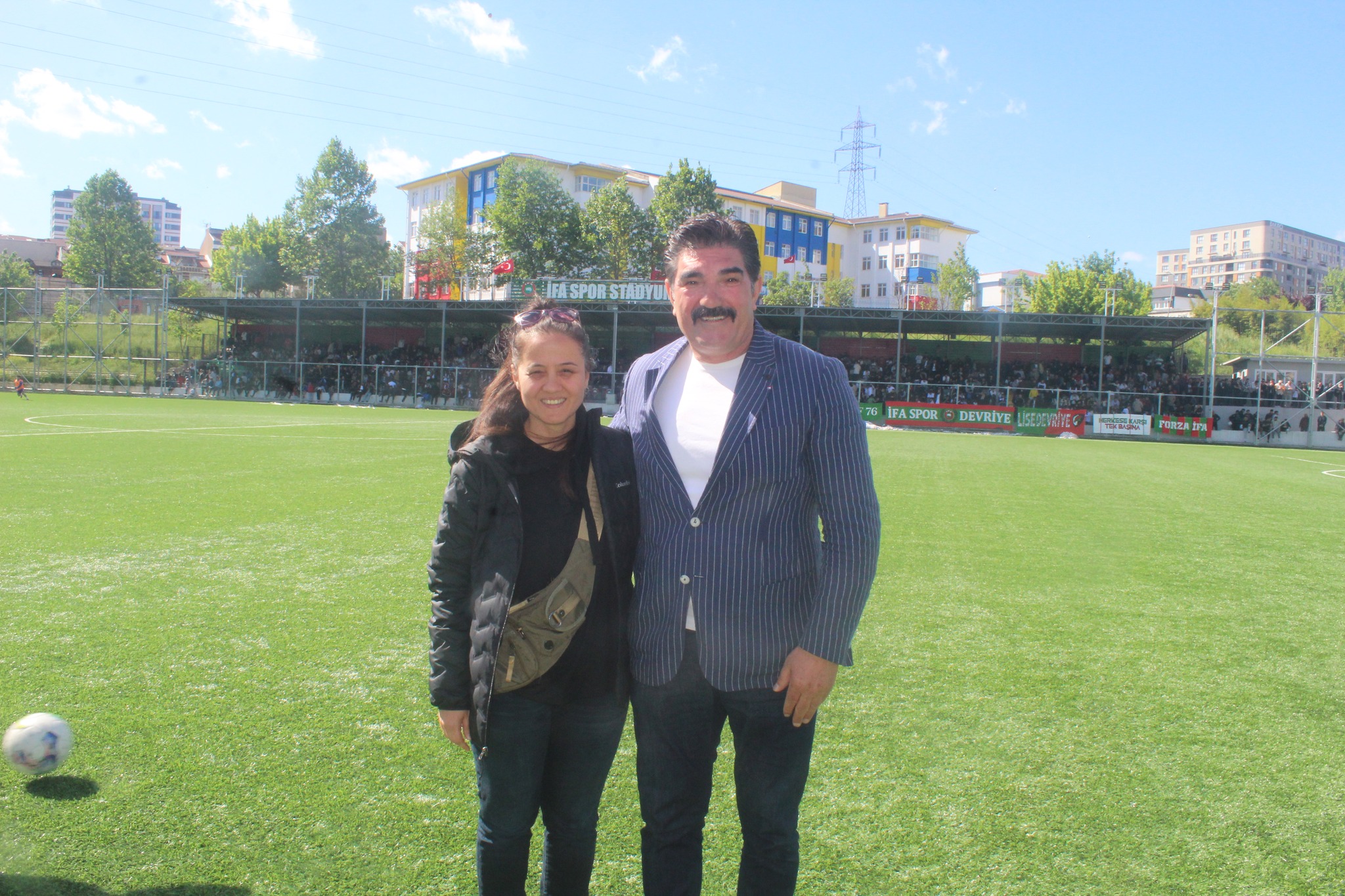 Nilgün Erol iki sezon önce şampiyonluk mücadelesinde havlu attığımız, İstanbul’un Küçükçekmece İlçesi’ndeki Halkalı semtinde Caferiler’in takımı olarak da bilinen İFA Spor ile oynadığımız golsüz berabere kaldığımız maç öncesi, dönemin İFA Spor Başkanı Aydın Aydeniz ile.
