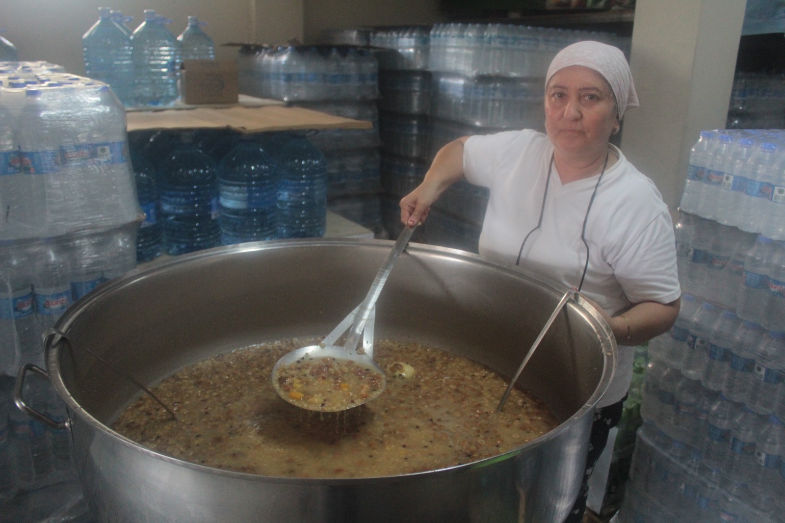 Aşureleri işyerlerinde Çetin Demircan’ın eşi Mihriban Demircan akraba ve arkadaşları Gülen Birgül, Sevsel Çağlayan, Saadet Kuş, Şadiye Aşık, Zeliha Gökdeniz ve Ahmet Doğru ile birlikte hazırladı. Mihriban Demircan her biri dörder kilo olmak kaydıyla buğday, fındık, fıstık, ceviz, üzüm, yeşil üzüm, kayısı, incir, dut ile birlikte şeker, portakal suyu, elma, karanfil, su biraz da tuzu harmanladıklarını; buğdayı akşamdan çatlattıktan sonra etkinlik günü dört saat süreyle kaynatarak aşureyi hazırladıklarını söyledi. Mihriban Demircan bir kazan dolusu aşureden 200 porsiyon civarı aşure ikramında bulunduklarını kaydetti.
