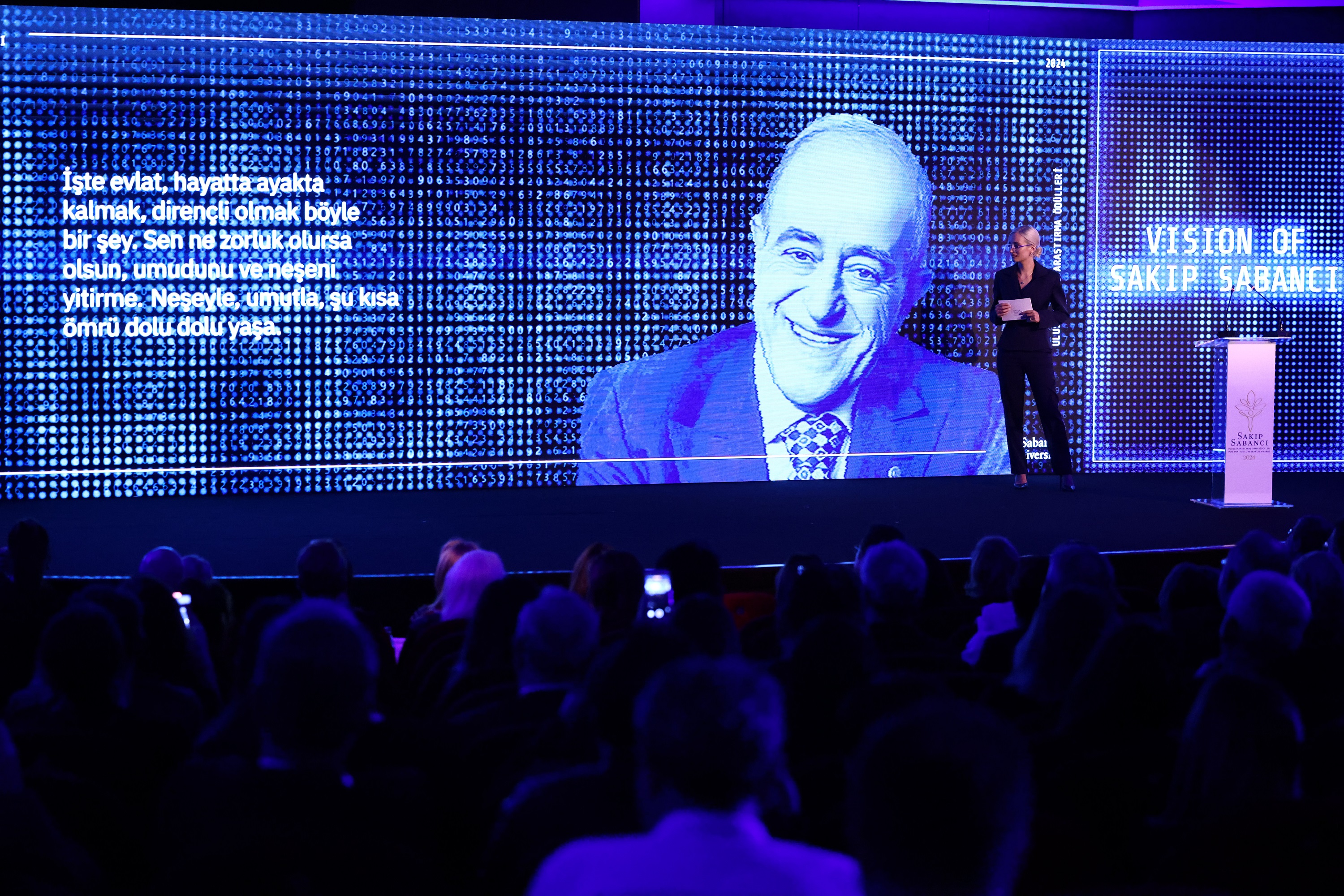 Sabancı Üniversitesi Onursal Başkanı Merhum Sakıp Sabancı, ölümünün 20’nci yılında özel bir törenle anıldı. Yapay zeka modeliyle yolladığı mesajında, 2024'te aranızda olaydım, yeni fırsatlar peşinde, tam gaz devam derdim. Durmak bize göre değil. ‘Yaparız’ diye bağırırdım” dedi Sabancı Center’da düzenlenen “Sakıp Sabancı Uluslararası Araştırma Ödülleri ve 20’nci Yıl Anma Töreni” kapsamında “Sakıp Sabancı’nın Vizyonu: Küreselleşen Dünyamızda Geleceğe Yol Alırken Trendler, Riskler ve Fırsatlar” temalı bir de panel gerçekleştirildi. Panele Türkiye’den ve dünyadan önde gelen bilim insanları katıldı.