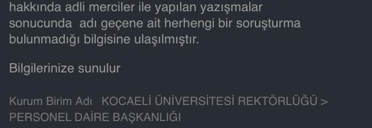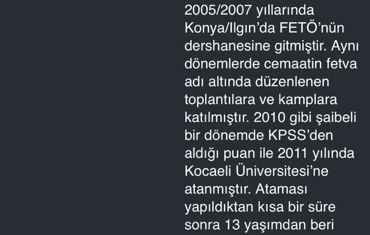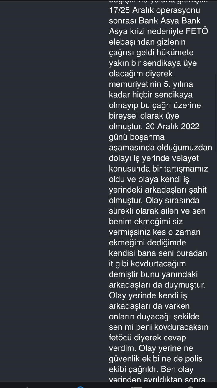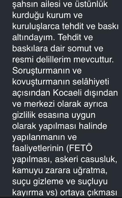 Hangi olay tekrarlanırsa işimden atılırmışım. Sen asılsız raporla bana ceza veriyorsun. Tekrarında işten atılacak diyorsun. Sonra da bunlar yargı sürecine karışmaya başladılar. Ben YÖK üzerinden ihbarda bulundum: “Şahıs (eşi) örgüt üyeliği üzerinden tehdit ediyor. Örgüt üyeliği bağlantılı olduğuna dair deliller var.’
