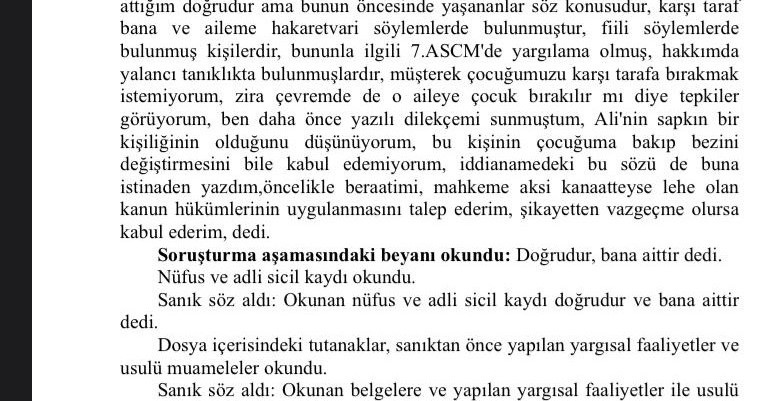 Özetin özetiyle: Bir kalem reçete yazılmadan taburcu ediliyor. Tedaviden bana haberde verilmiyor. Bir de o tecavüzcü memlekette arkadaşa, ‘Ben ‘(H.Ç ve T.D çiftinin kızları) M’nin yanına gidip geliyorum. Ama H.Ç beni yakalayamaz çünkü yanımda telefon götürmüyorum’ diyor. Mahkemeye bunları sunuyorum. HTS kayıtları burada, pasif konumda. Sağlık, hastane kayıtları burada. Şahıs gidiyor arkadaşıma böyle bir beyanda bulunuyor. Bunun incelenmesini araştırmasını istiyorum, diyorum. Çocuğumun sağlık kontrolünden geçirilmesini istediğimi söylüyorum. Hiçbir şey yapmıyorlar.