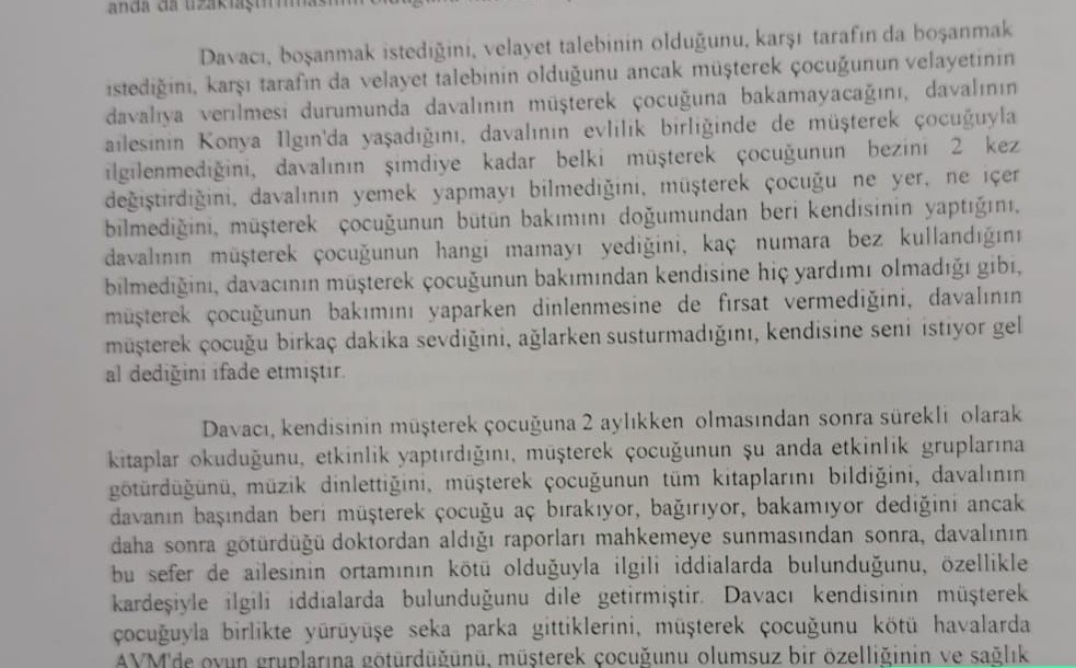 Yargı sürecinde kızımın velayetinin eşime veriliş sebebi, gerekçe; ‘H.Ç zamanında trafik kazası ile bir kişinin ölümüne sebep olduğundan babalık görevini yerine getiremez.’
