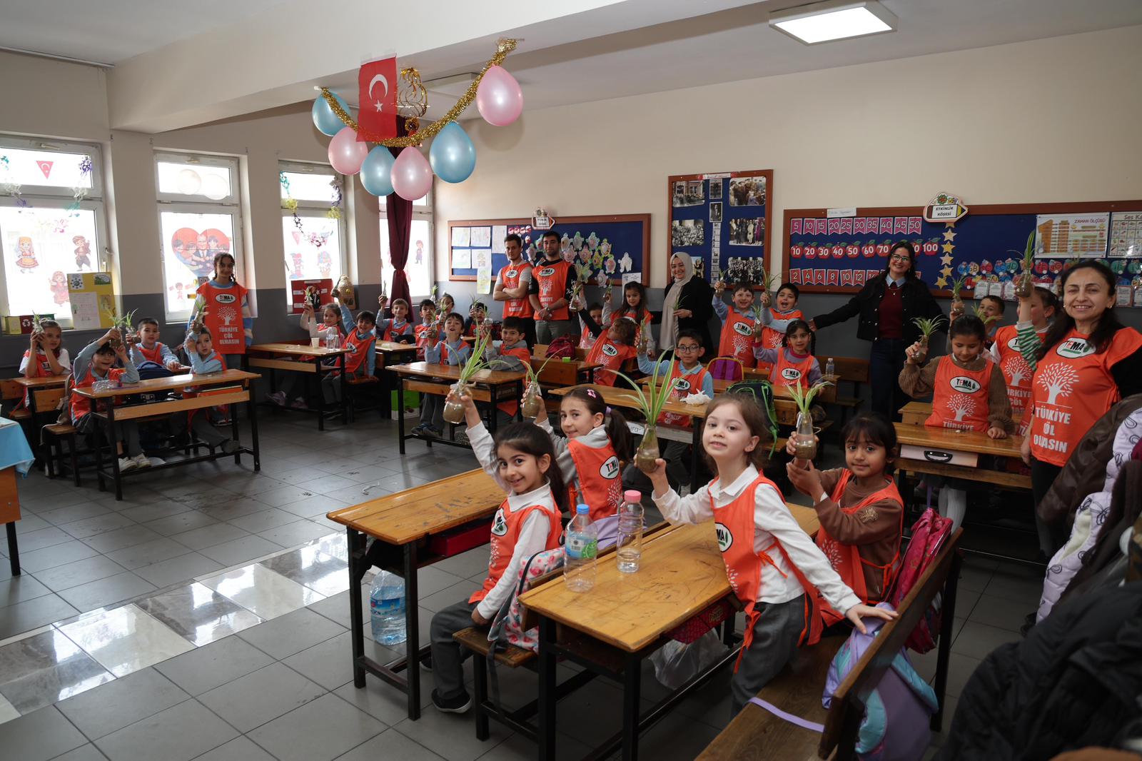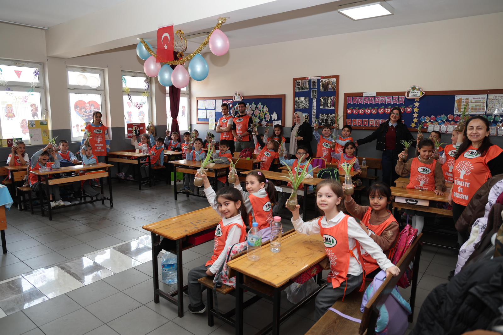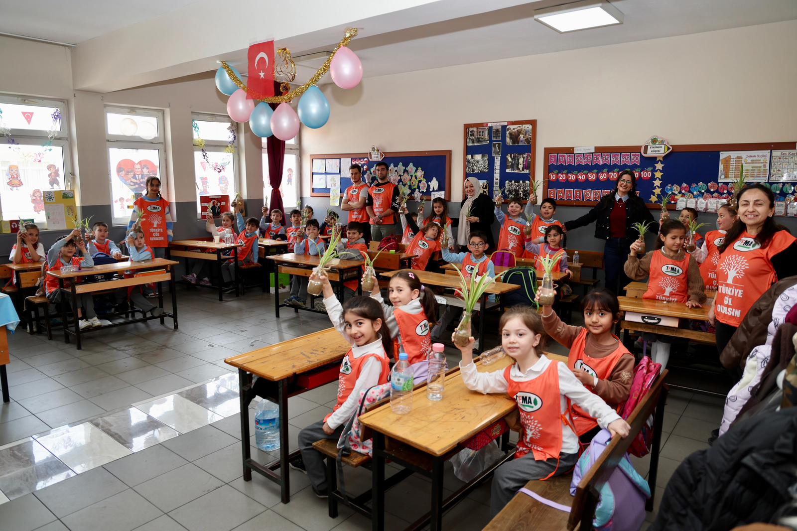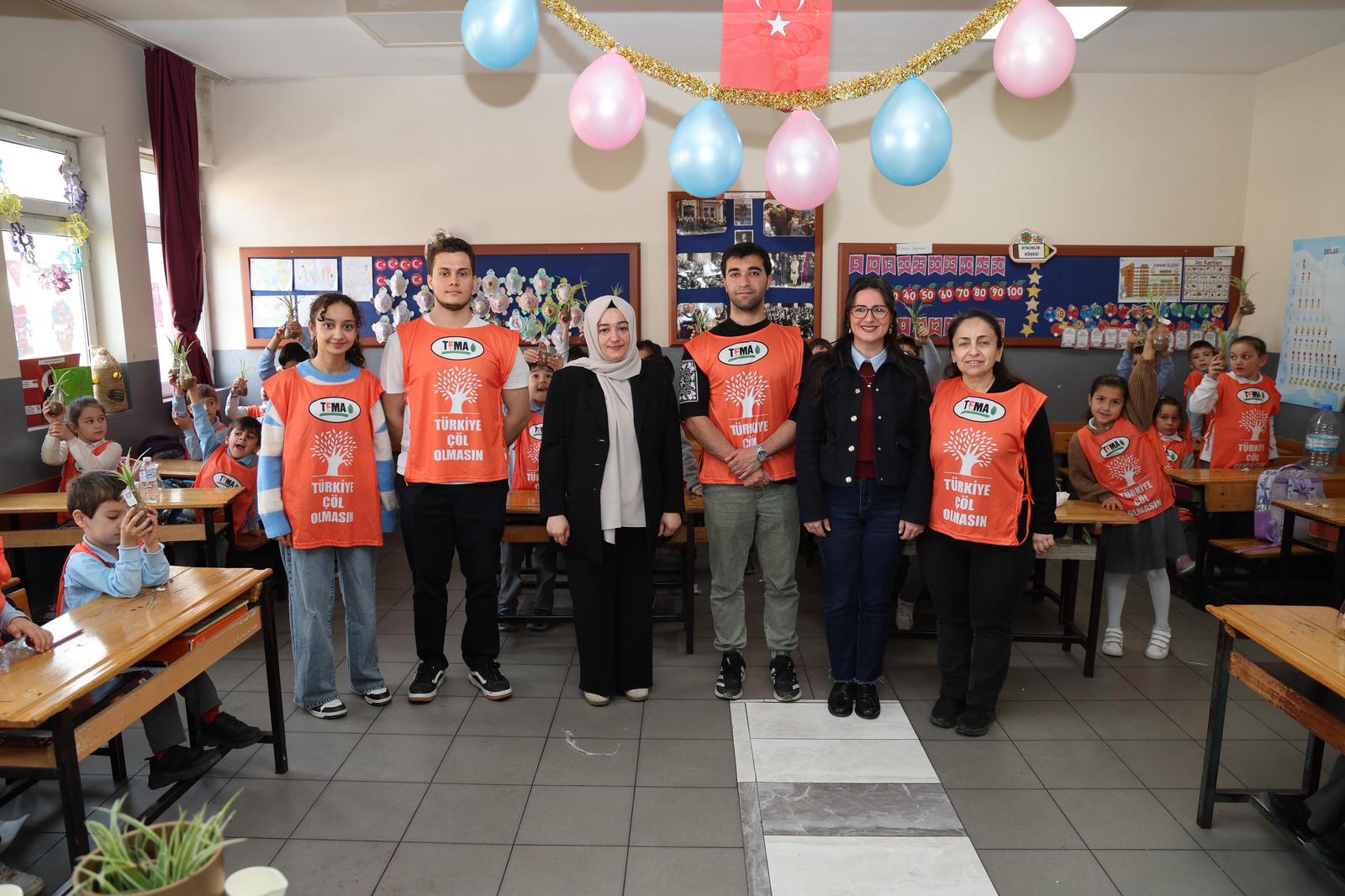 Gebze’nin Mustafapaşa Mahallesi’ndeki Atatürk İlkokulu’nda sınıf öğretmenliğini aynı zamanda TEMA Gebze İlçe Temsilcisi Deniz Yıldız’ın yaptığı 1D sınıfı öğrencileri;