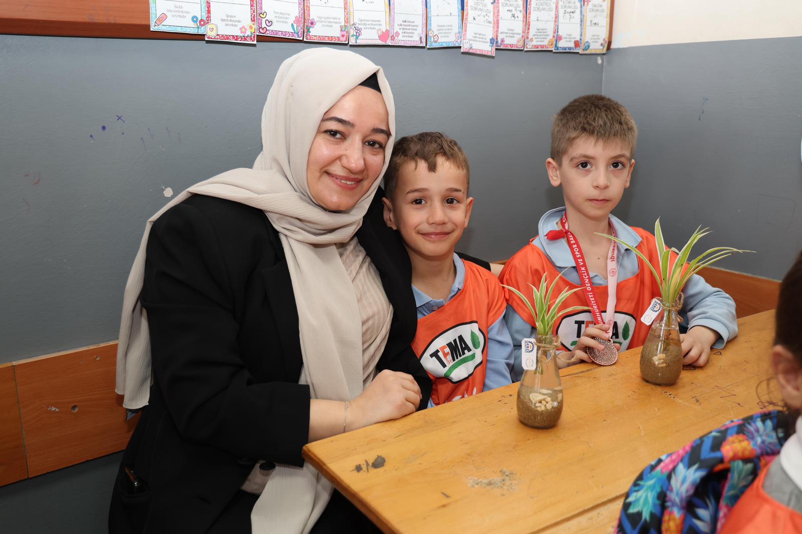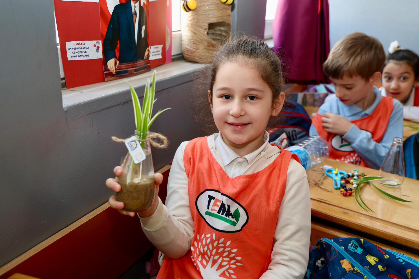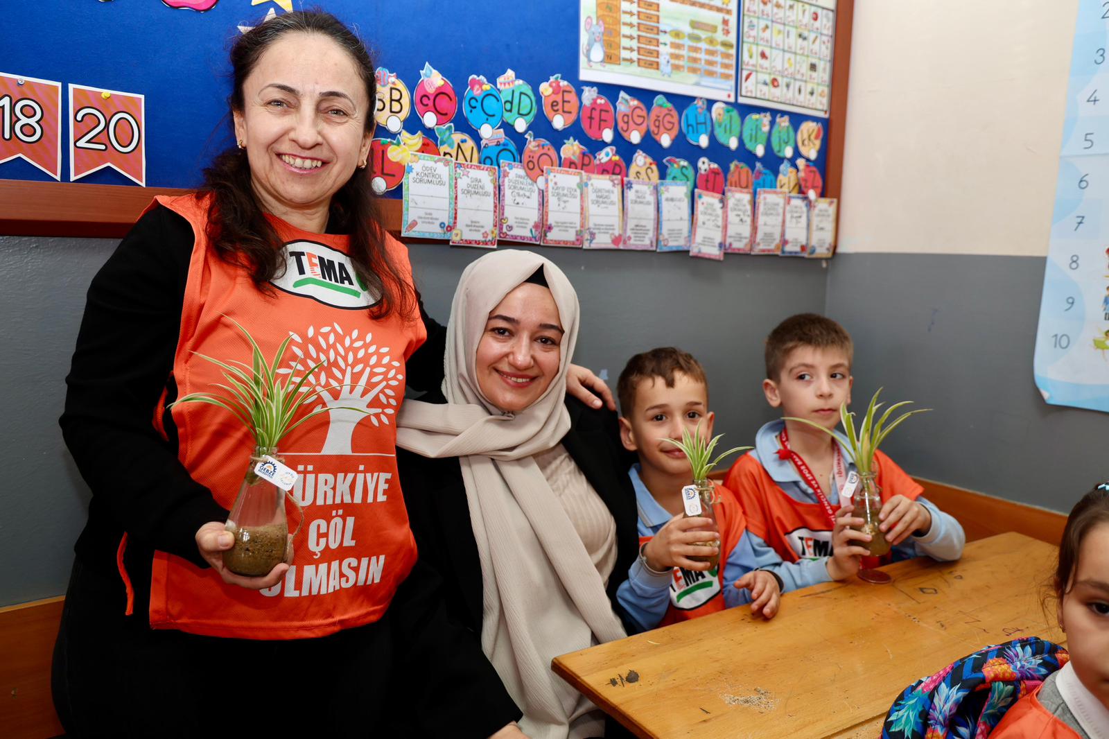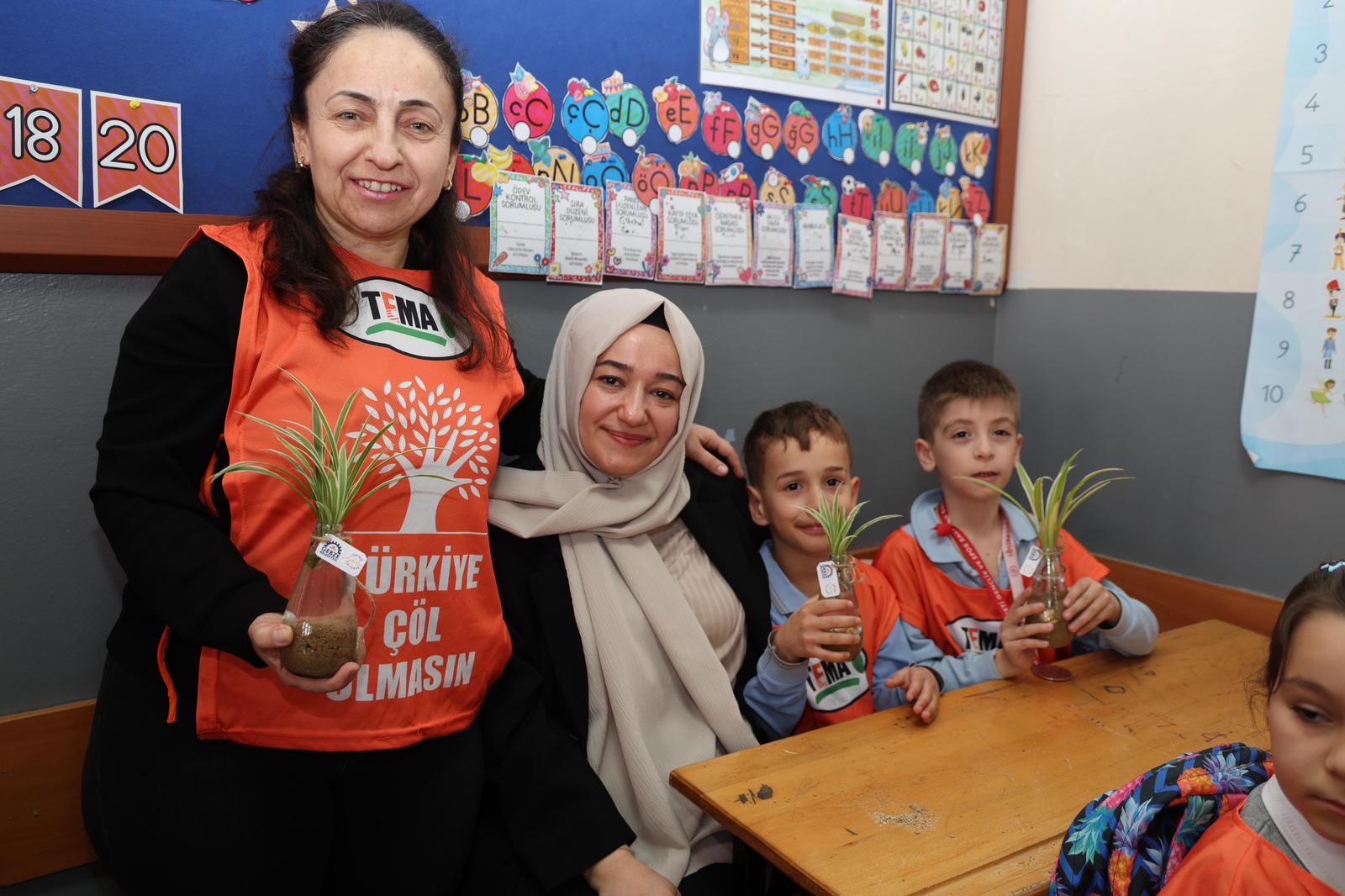 Gebze’nin Mustafapaşa Mahallesi’ndeki Atatürk İlkokulu’nda sınıf öğretmenliğini aynı zamanda TEMA Gebze İlçe Temsilcisi Deniz Yıldız’ın yaptığı 1D sınıfı öğrencileri;