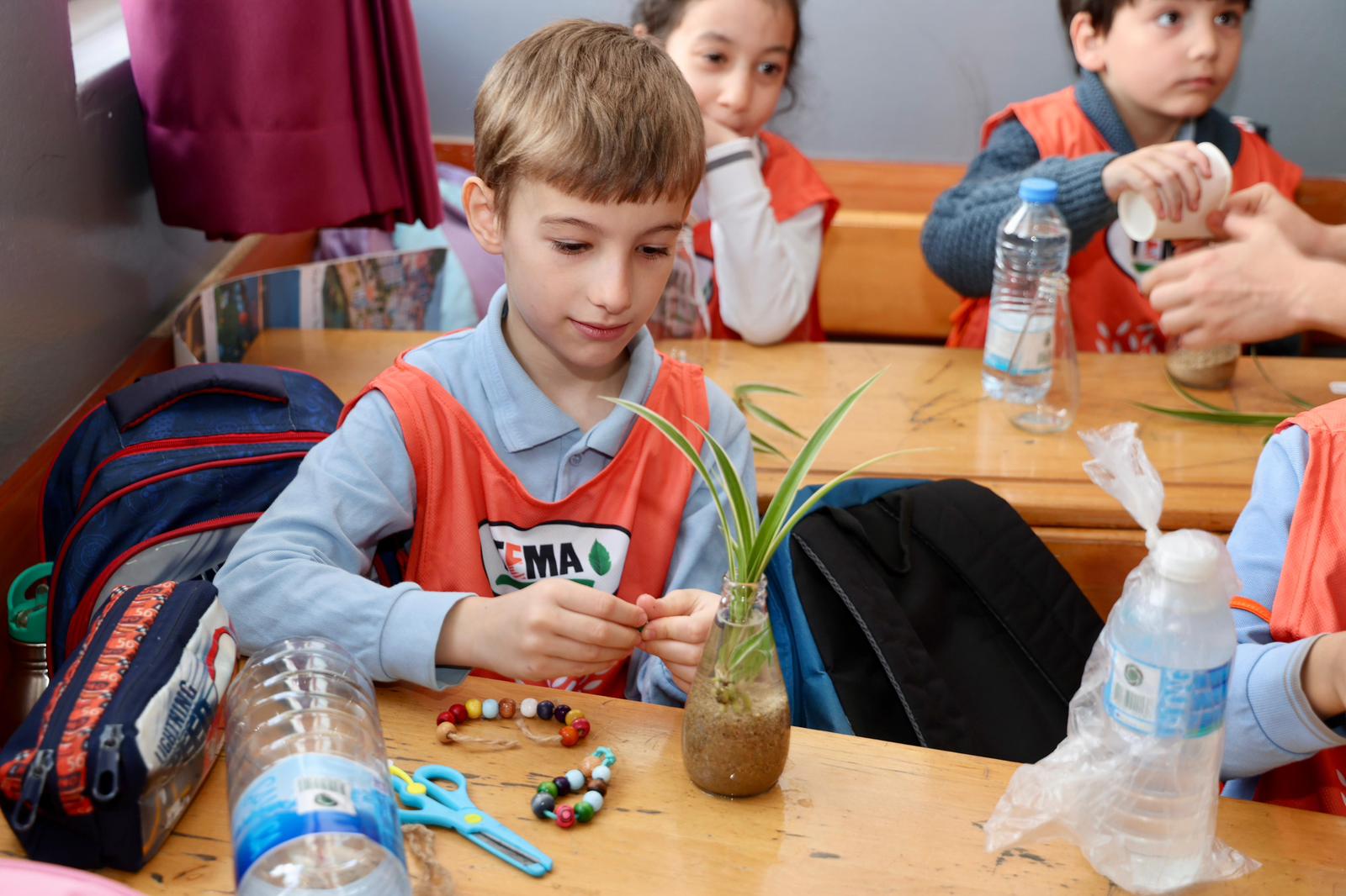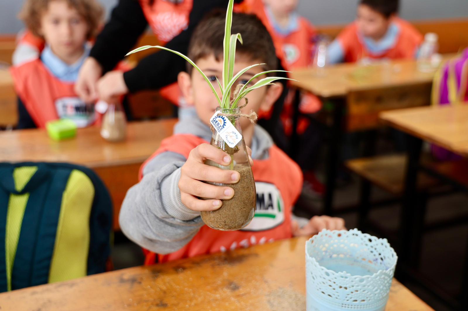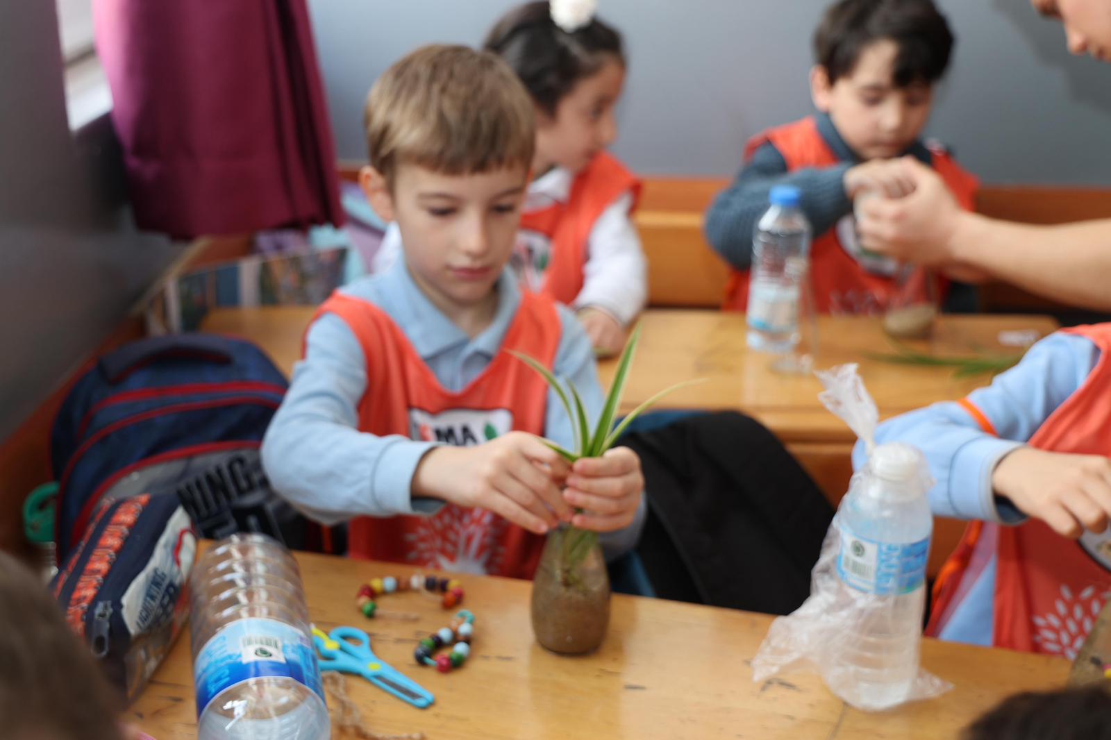 Atatürk İlkokulu’nda 1D sınıfı öğrencileri Gebze Belediyesi Park Bahçeler Müdürlüğünün ayni desteği ve katkısı, GTÜ Bilgisayar Mühendisliği öğrencileri ve TEMA Gebze desteğiyle soda şişelerini geri dönüşüme, içinde çiçek ekerek dönüştürdü