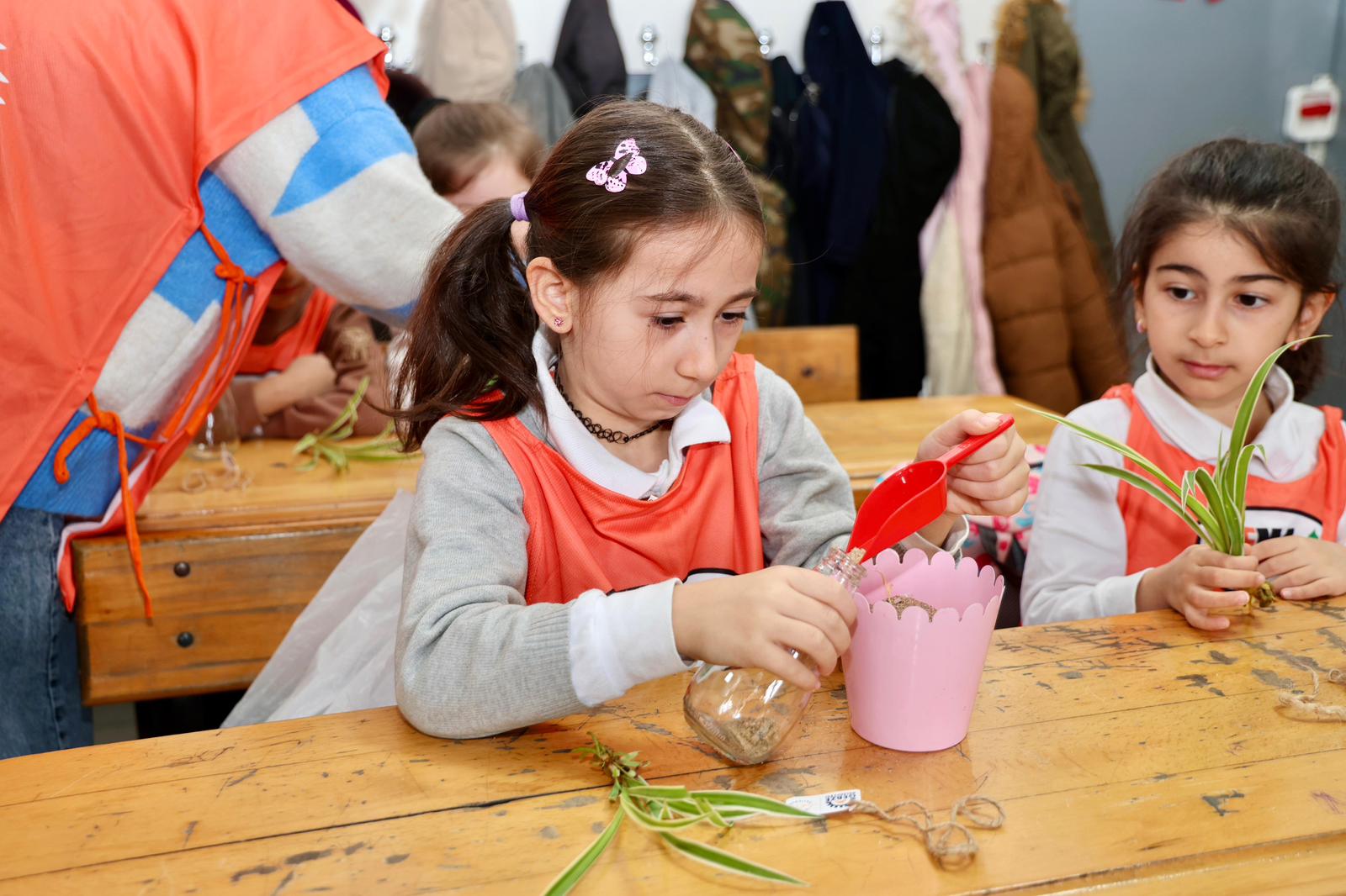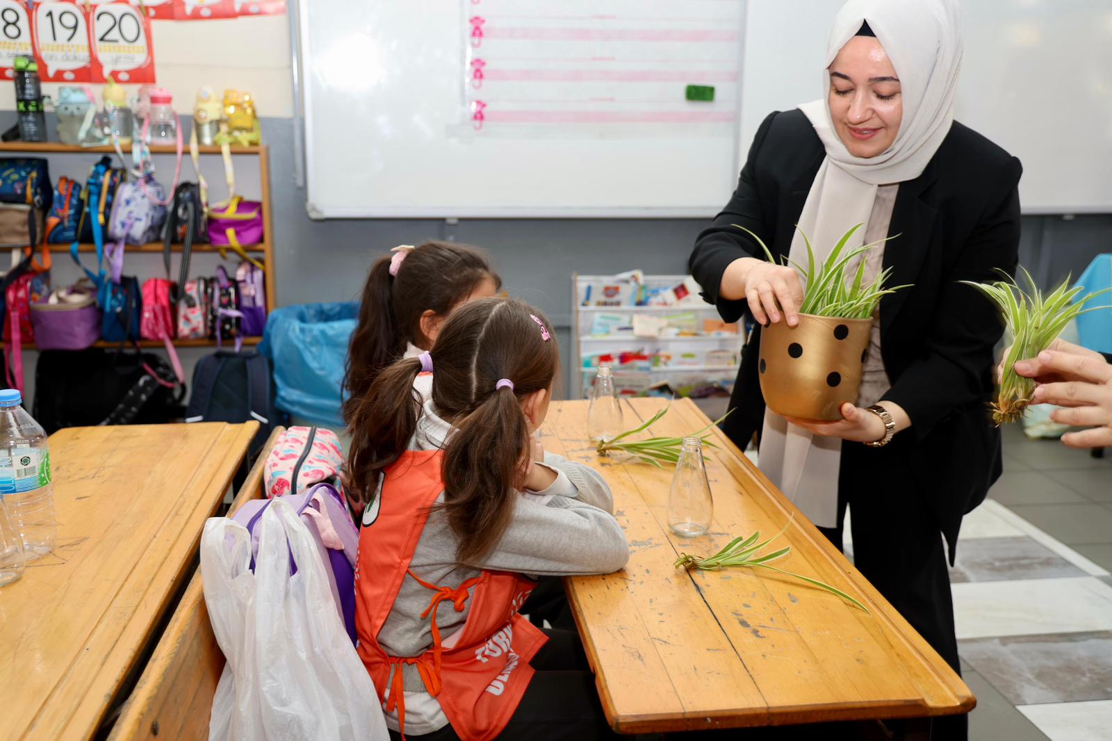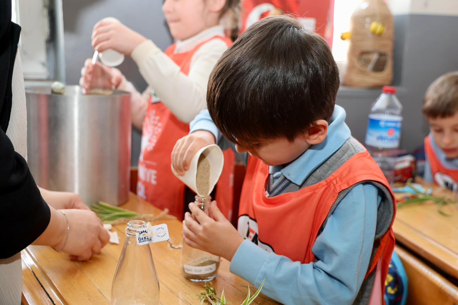 Atatürk İlkokulu’nda 1D sınıfı öğrencileri Gebze Belediyesi Park Bahçeler Müdürlüğünün ayni desteği ve katkısı, GTÜ Bilgisayar Mühendisliği öğrencileri ve TEMA Gebze desteğiyle soda şişelerini geri dönüşüme, içinde çiçek ekerek dönüştürdü