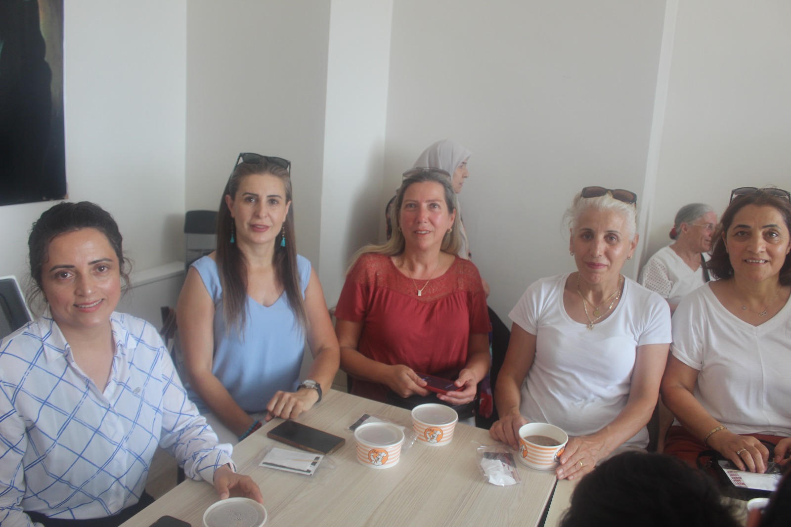CHP Tuzla Kadın Kolları Başkanı Emine Karagözoğlu ile yönetiminden Sakine Tay ve Zeycan Çevik, Gebze Kadın Kolları Başkanı Sevgül Tüze ve Darıca Kadın Kolları Başkanı Sultan Efendioğlu Ekinci ile yönetimleri, CHP Gebze İlçe eski Başkanı ve son yerel seçimlerde Darıca Belediye Başkan adayı Saide Arslan Çalışkan, Gebze Belediye Meclisi CHP Üyesi Gülcan Aksu, CHP Gebze Kadın Kolları önceki dönem başkanı Yaşa Erdoğan, Çayırova merkezli Marmara Engelliler Derneği – MARENDER Başkanı Münevver Yılmaz, Uyuşturucu ile Mücadele Federasyonu – UMFED Çayırova İlçe Başkanı Sevda Vakitbilir, Kadın ve Mücadele Derneği Kocaeli Şube Başkanı Emine Özcan, Çayırova Abdal Musa Cem Evi Kadın Kolları Başkanı Şengül Karateke ve yöneticileri, CHP Çayırova Kadın Kolları eski Başkanları Türkan Kılıç ve Fadime İlhan, İlçe Başkanı Binali Eniş’in eşi Müjgan Eniş ile birlikte