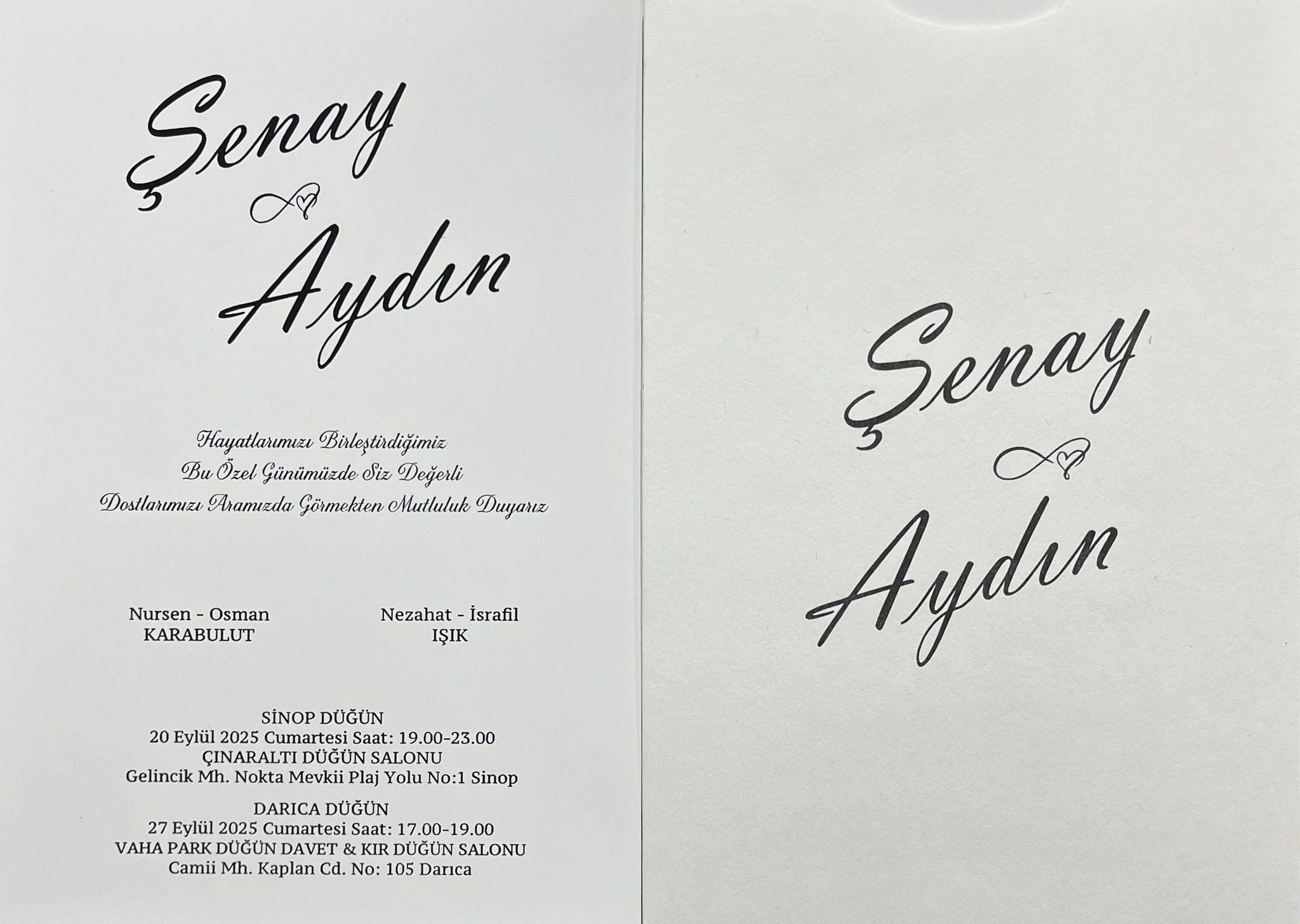 Çiftin Darıca’daki düğünleri Camii Mahallesi, Kaplan Caddesi No: 105 adresindeki Vaha Park Düğün Davet / Kır Düğün Salonu’nda 17.00 – 19.00 saatleri arasında gerçekleşecek.