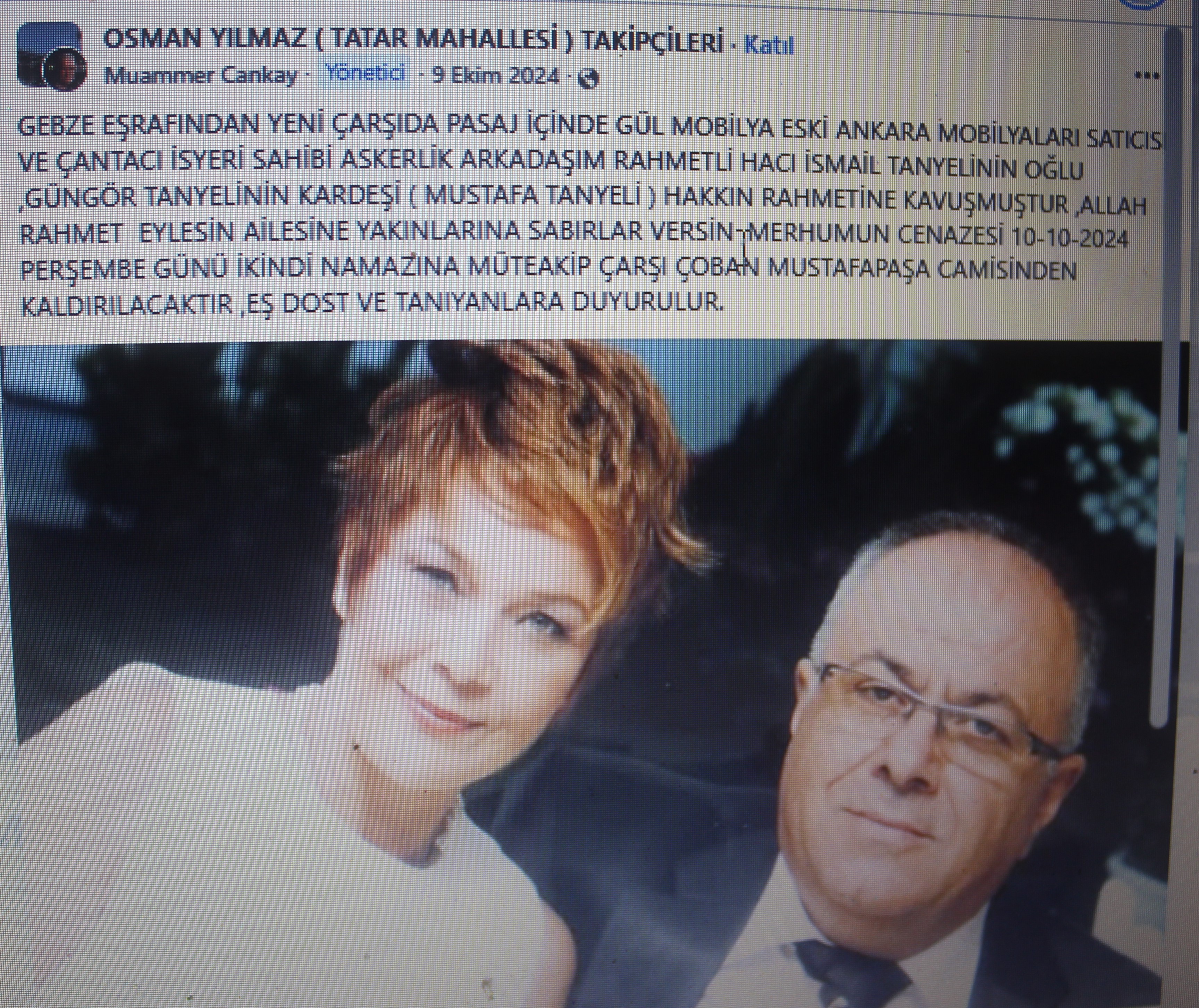 Merhumların fotoları torun ve yeğen Gül Tanyeli Atasayan; Mustafa Tanyeli’nin cenaze fotoları Muammer Cankay’ın Facebook sayfalarından alıntıdır.